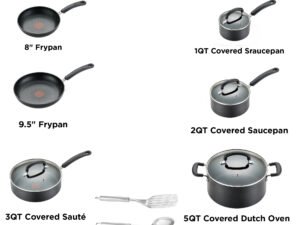 T-fal Expert Pro Nonstick Cookware Set, 12 piece Cookware Set, Black