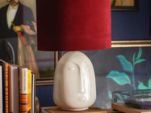 Ivory Ceramic Face Lamp with Wine Velvet Shade by Drew Barrymore Flower Home