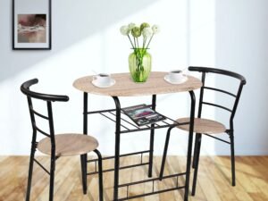 Mainstays 3 Piece Metal and Wood Dining Set, Table Height 29.15”, Multiple Colors