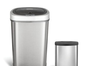 Nine Stars 13.2 Gal / 50L + 2.1 Gal / 8L Motion Sensor Trash Can Combo, Fingerprint-Resistant Stainless Steel