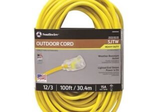 Southwire 2589SW0002 12/3 100′ Yellow SJTW Outdoor Heavy Duty Water Resistant 3 Prong Extension Cord