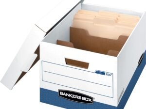 Bankers Box R-KIVE Heavy-Duty Storage Boxes with Dividers, Letter/Legal Files, 12.75″ x 16.5″ x 10.38″, White/Blue, 12/Carton -FEL0083601