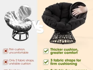 AILE 360 Swivel Ergonomic Papasan Chair with Comfy Cushion and Sturdy Metal Frame for Living, Bedroom, Reading Room, Lounge (Onyx Stone – Black Frame)